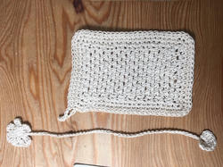 まだ作ったばかりで使ってないけど、ちょっとマイクロプラスチックのことを考えたかなぁという感じがする。タコ糸一巻き30メートルで一個、余ったので花を編んで栞も作ってみた。